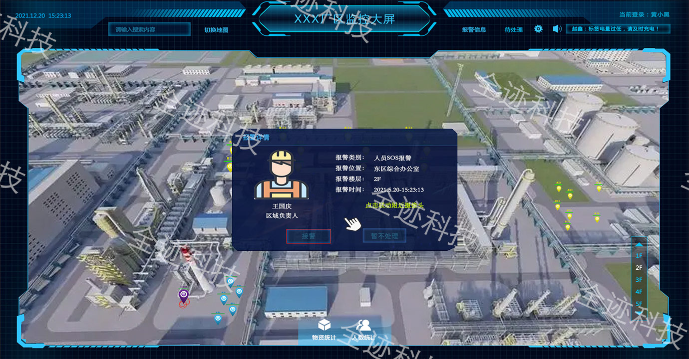 支持单人一键呼救SOS,如遇系统性故障中控台可一键通知全员撤离。