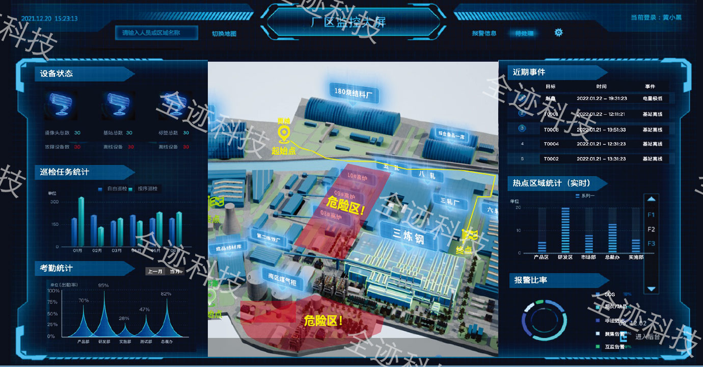 对汽轮机房、锅炉房、电机、油库等高危区域动态监管,无权限人员滞留、靠近则触发告警。